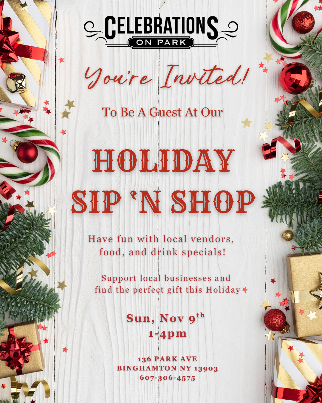Join us at Celebrations On Park for a festive Holiday shopping day! Support local businesses and find that perfect gift for your family and friends for the upcoming Holidays!